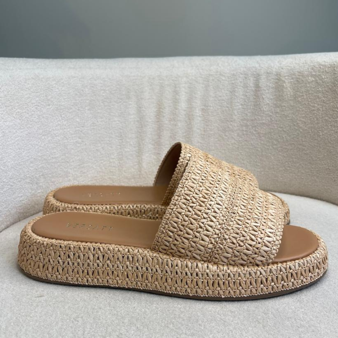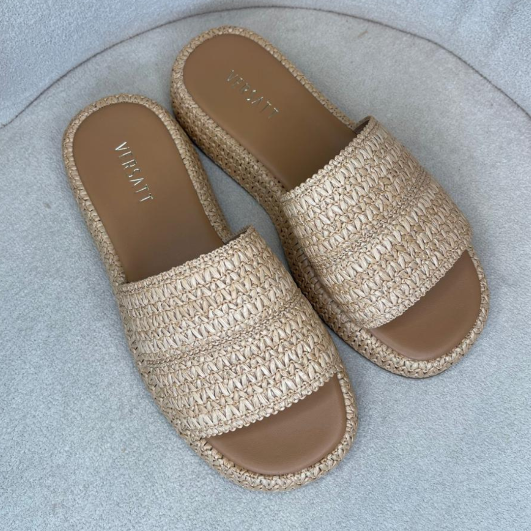 Flat com tira larga em palha natural