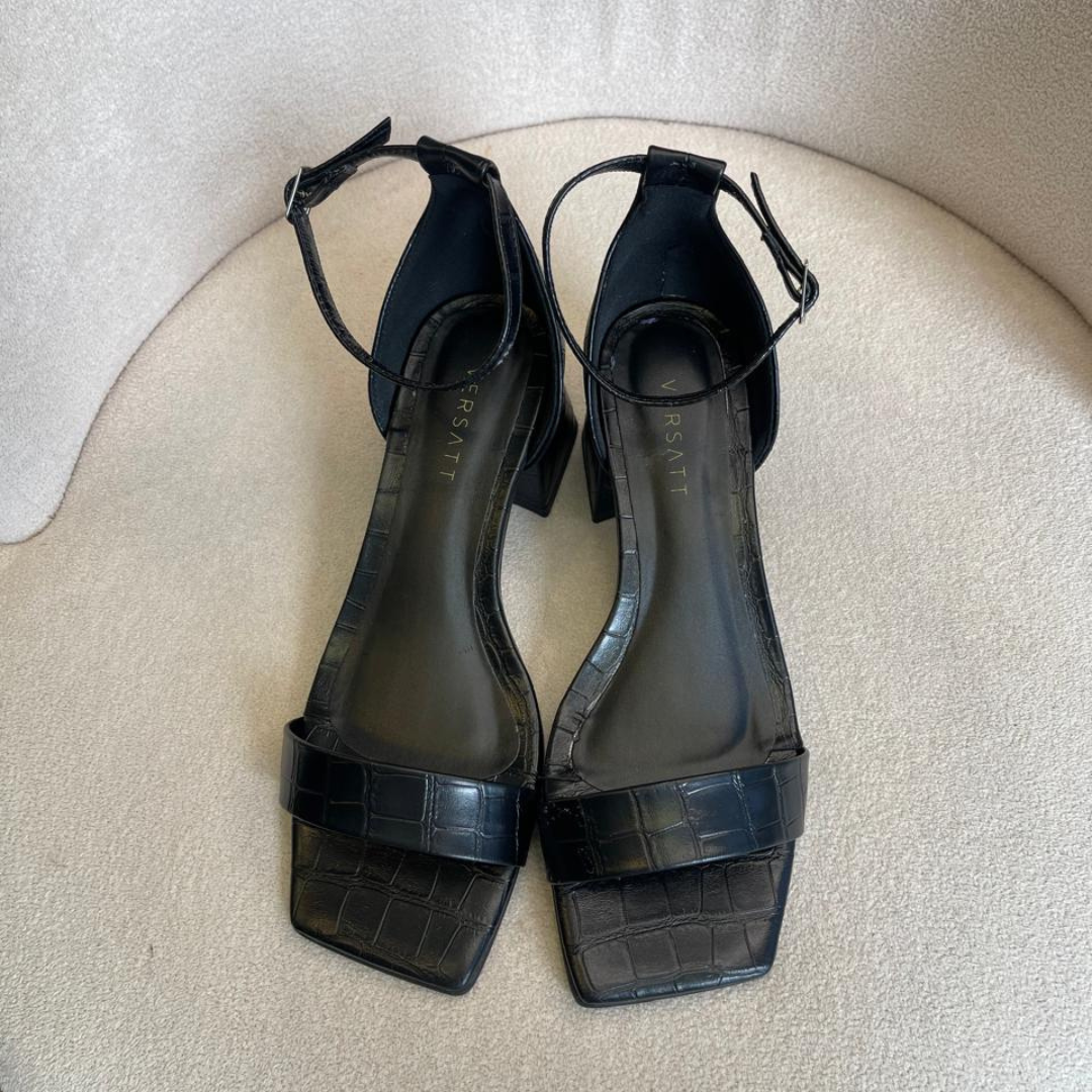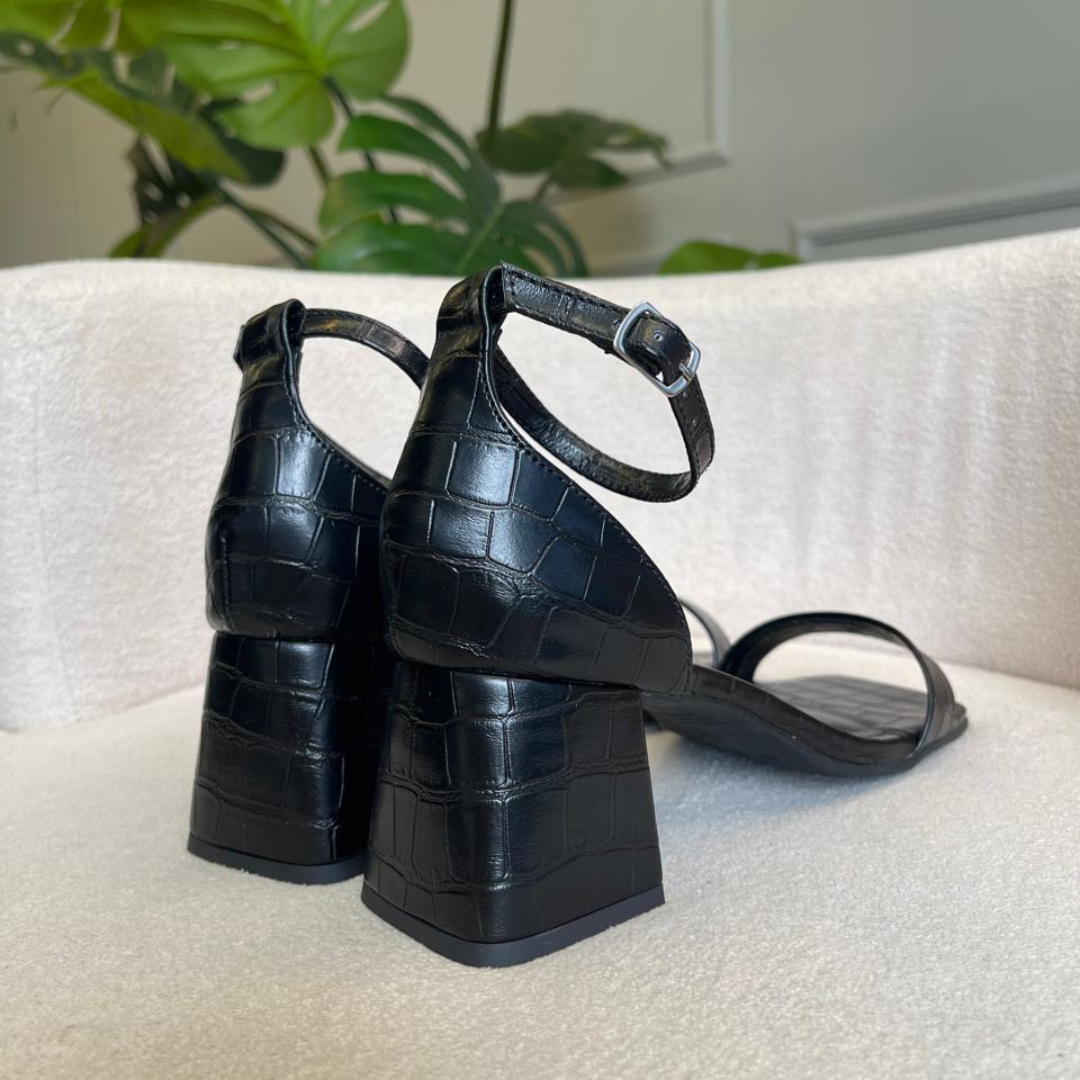SANDÁLIA COM TIRA NA COR PRETA DETALHE EM CROCO