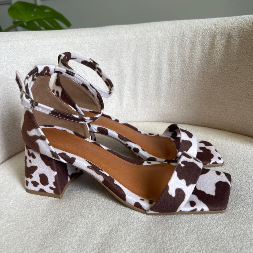 SANDÁLIA EM TECIDO ESTAMPADO COW PRINT