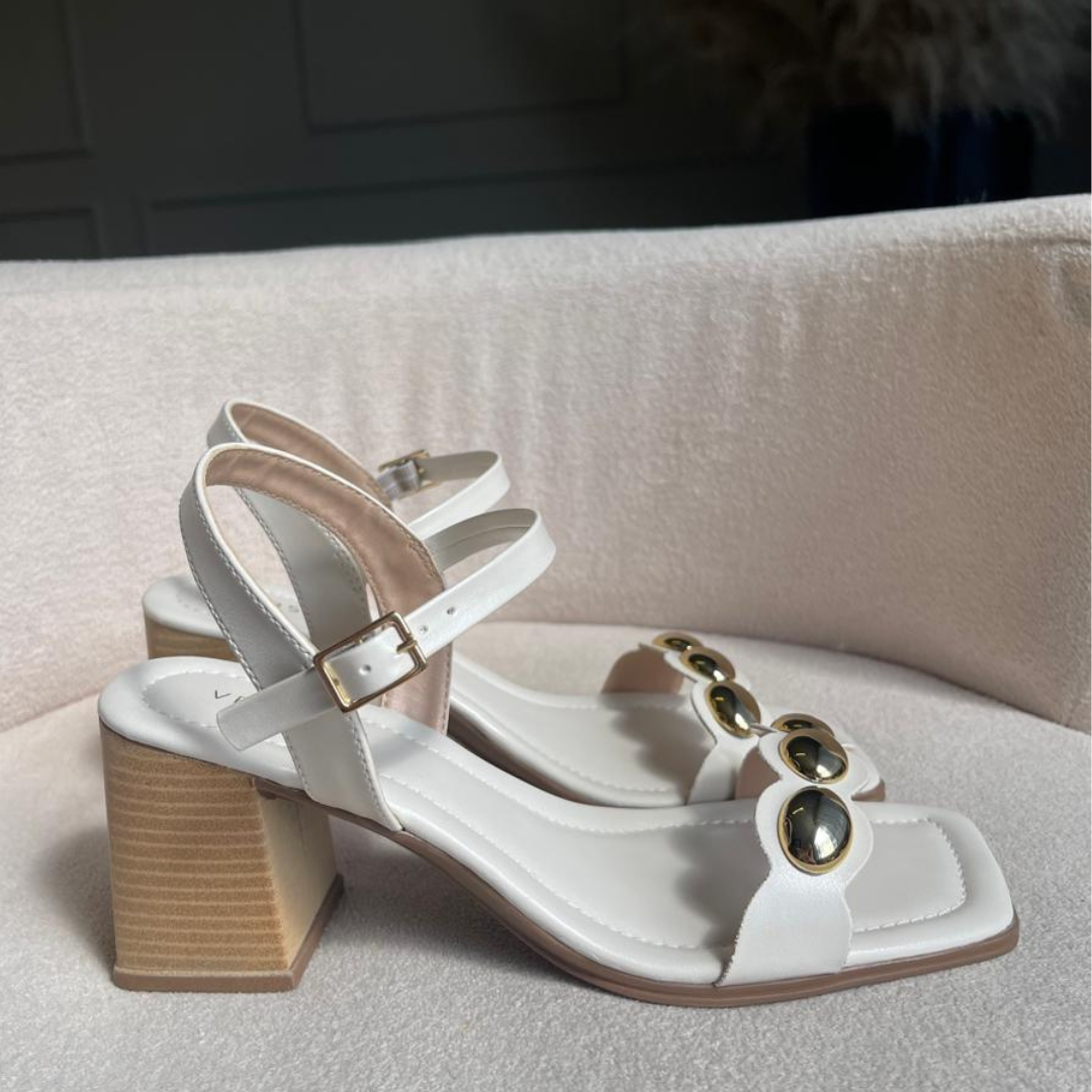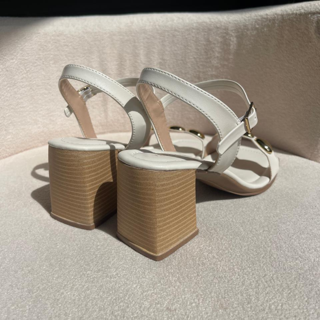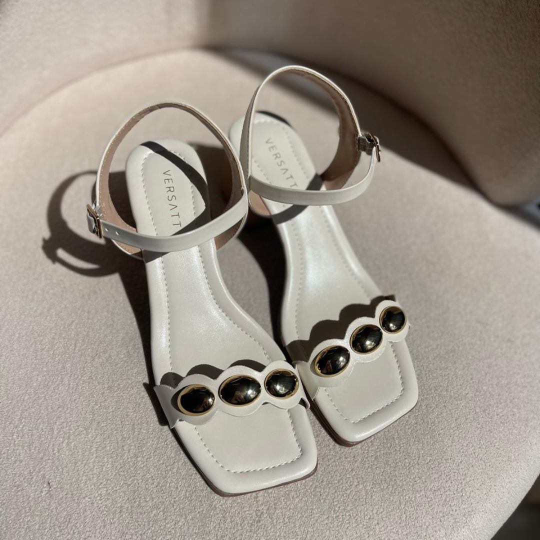 SANDÁLIA NA COR OFF WHITE COM ESFERAS DOURADAS