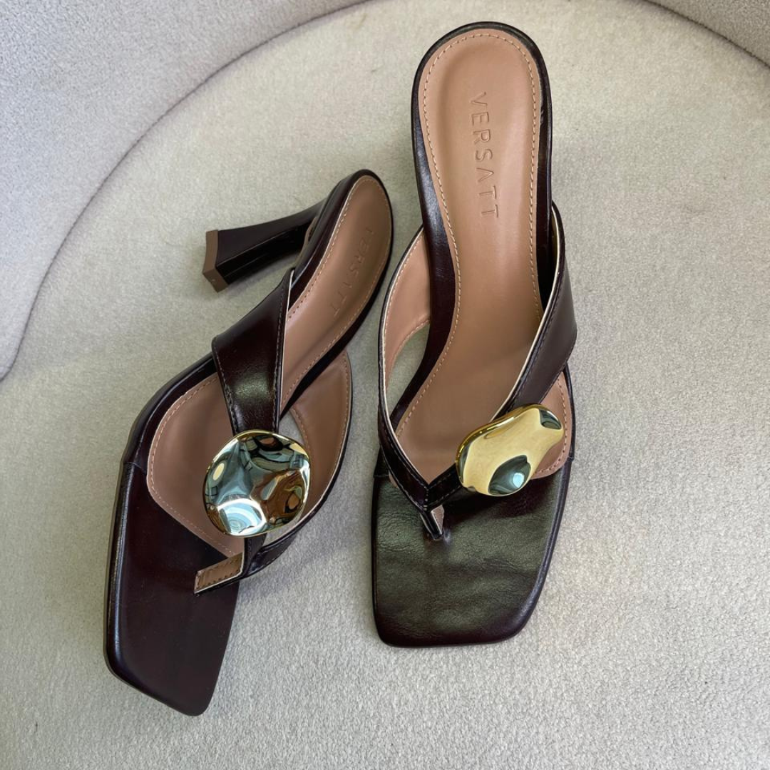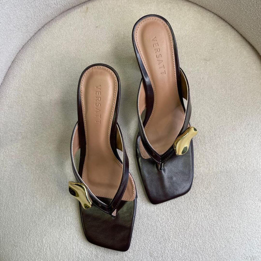 TAMANCO DE TIRAS DE DEDOS NA COR MARROM COM